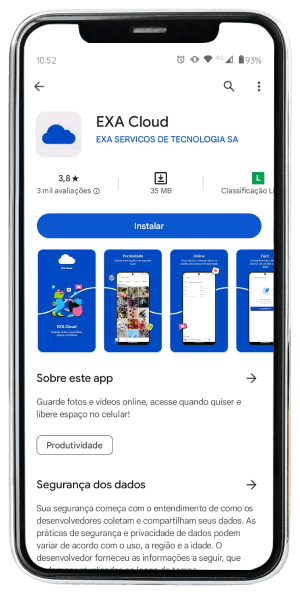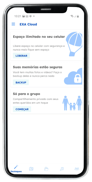 Com a Exa Cloud você tem espaço de memória online para salvar fotos, vídeos, músicas, agenda, contatos e arquivos. Além disso, você pode compartilhar seus conteúdos de um jeito muito rápido e fácil, com poucos cliques.